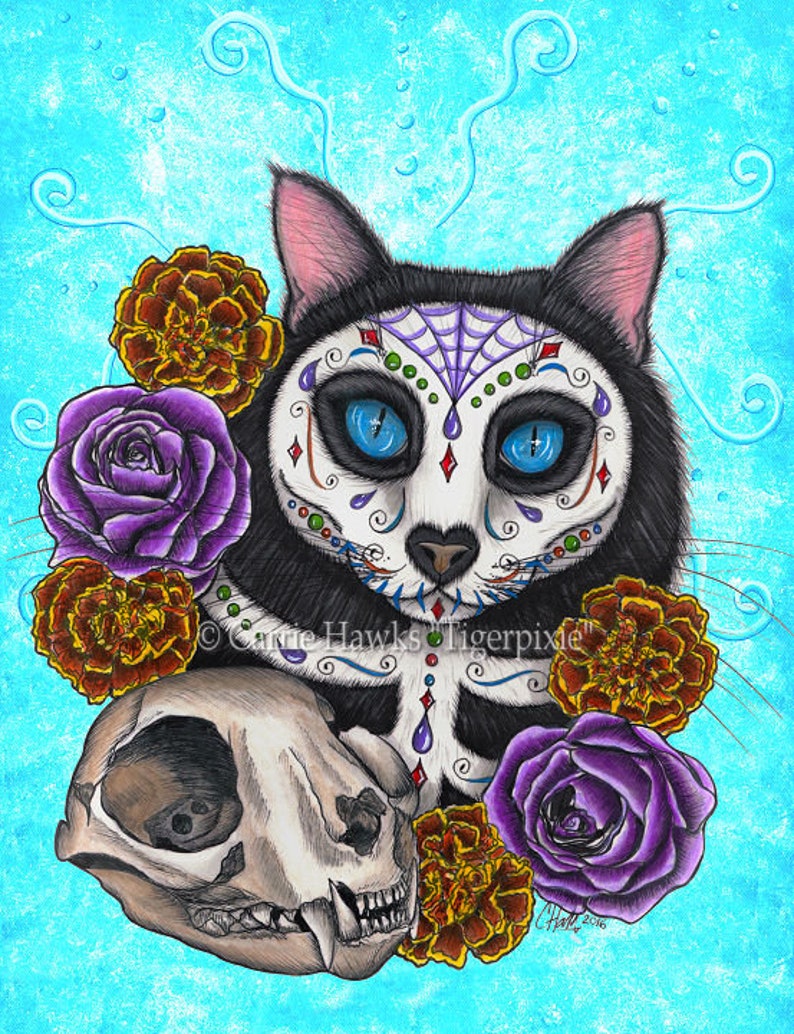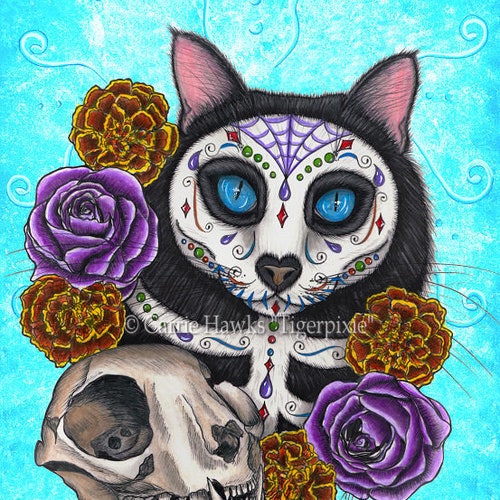 Day of the Dead Cat Skull Art Cat Purple Roses Mexican Sugar Skull Cat Gothic Cat Art Limited Edition Canvas shops Print 11x14 Cat Lover, Day of the Dead Cat Skull Art Cat Purple Roses Mexican Sugar Skull Cat Gothic Cat Art Limited Edition Canvas Print 11x14 Cat Lover saving