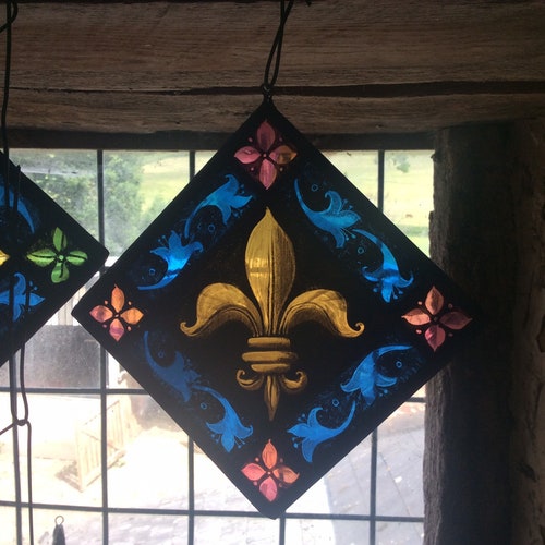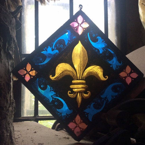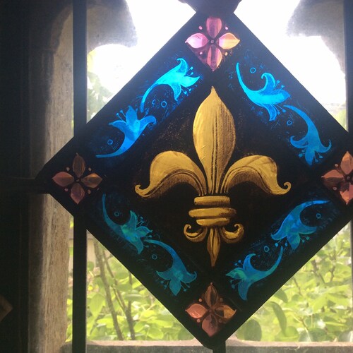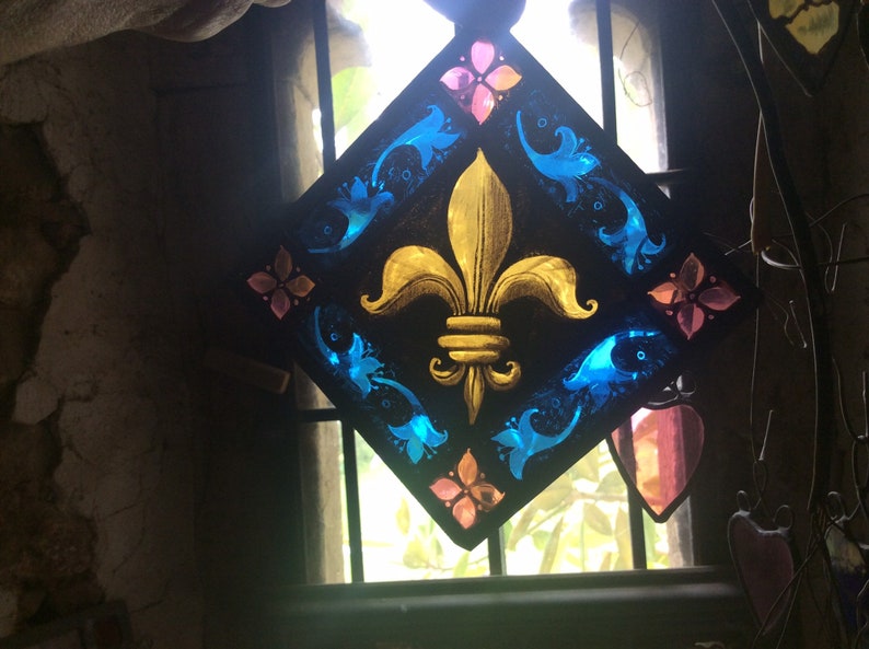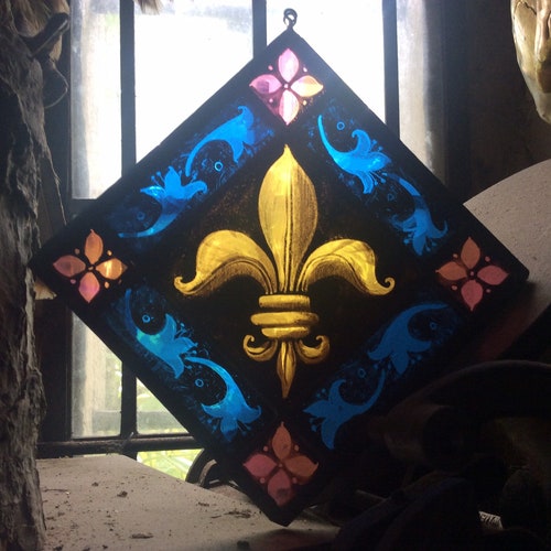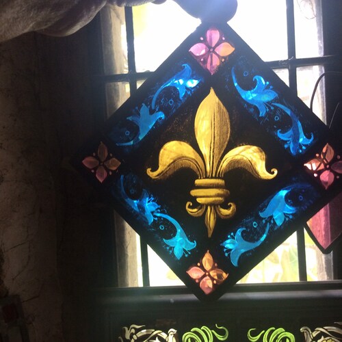 Fleur de Lis Stained shops Glass Window Decor with pink, Fleur de Lis Stained Glass Window Decor with pink retail