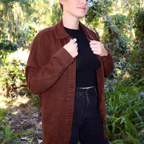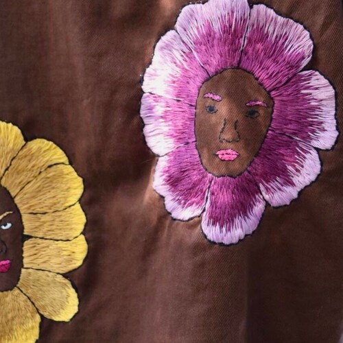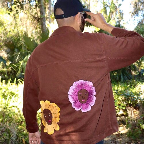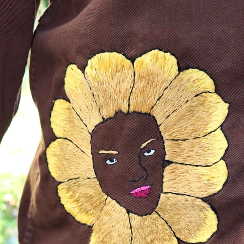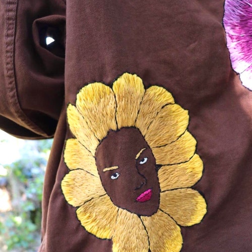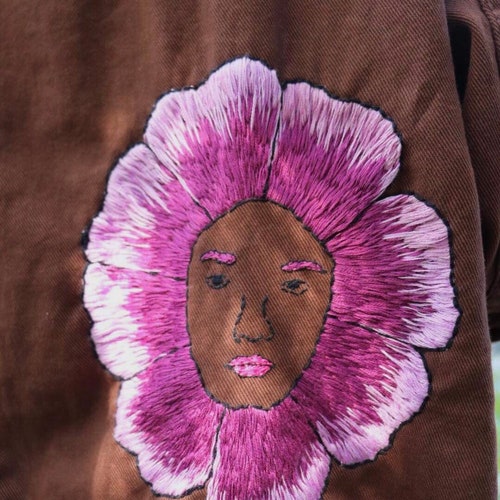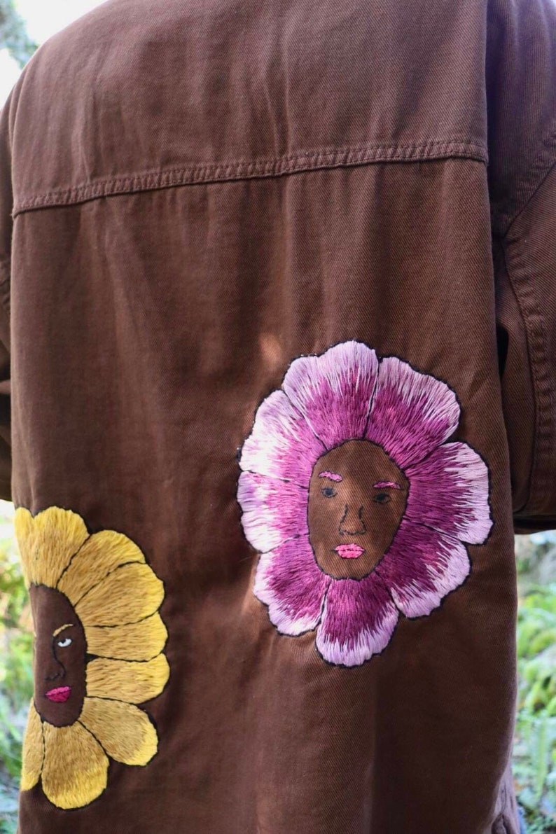 - Hand Embroidered Jacket, Denim Jacket, Brown Denim Jacket, Flower Denim Jacket