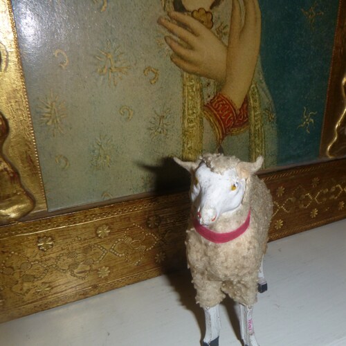 - Vintage Old German Putz Sheep.Floppy/Fly Away Ear Nativity Lamb.Antique Unique Nordic Brocante.