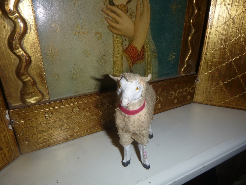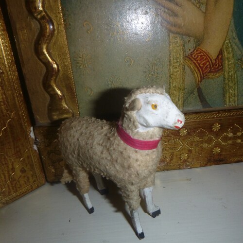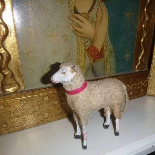 Vintage Old German Putz Sheep.Floppy/Fly Away Ear Nativity Lamb.Antique Unique Nordic Brocante. shops