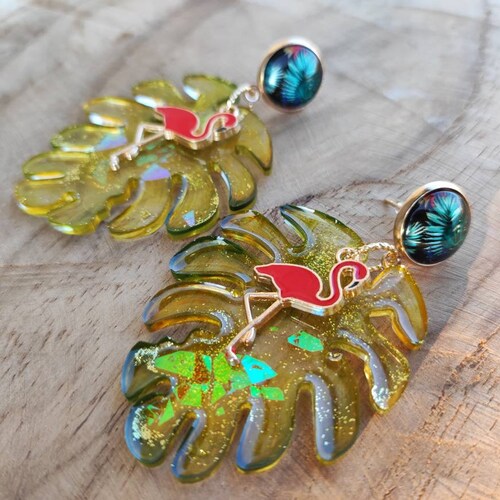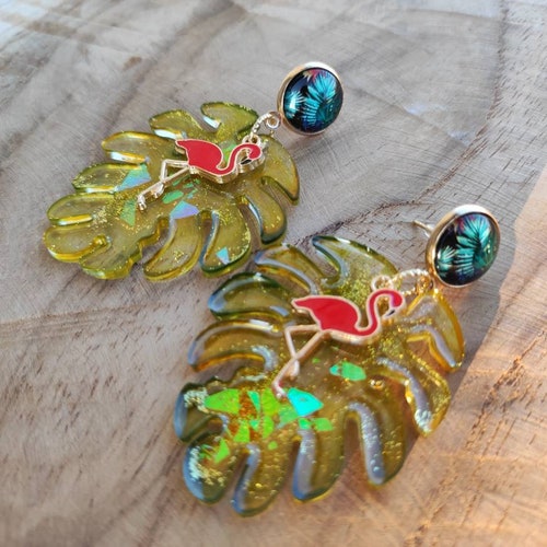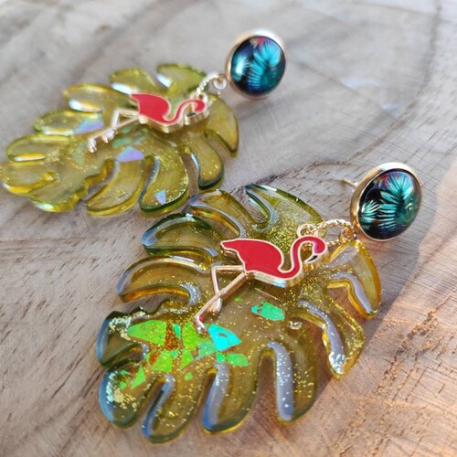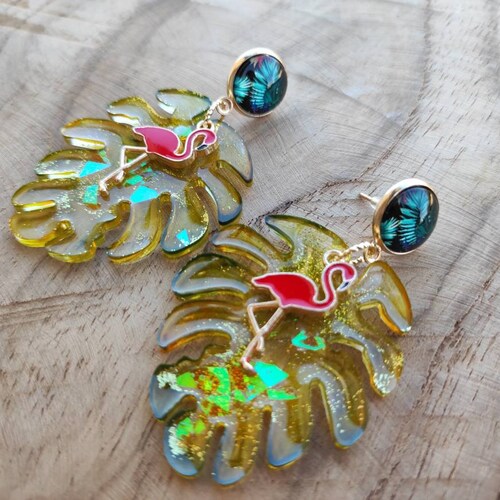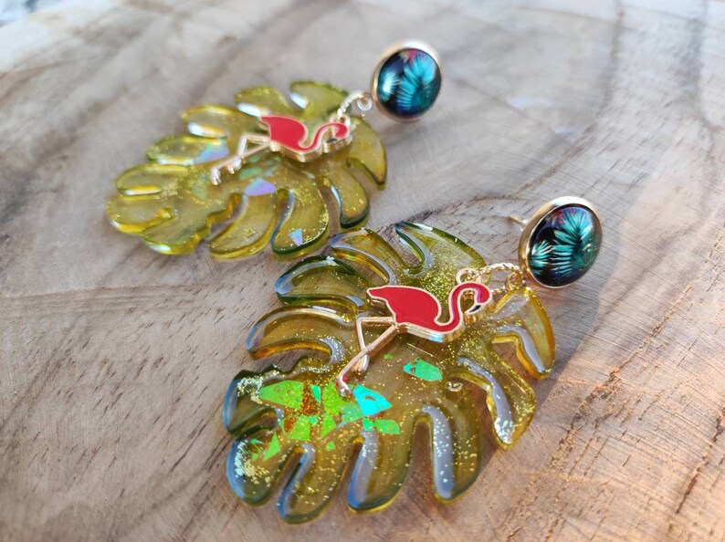 Stainless steel earrings with glass cabochons and epoxy charms, Palmer shops Earrings