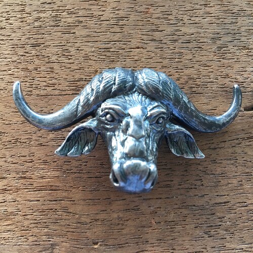 Buffalo brooch sliver shops or gold with ruby , enameled black, Buffalo brooch sliver or gold with ruby , enameled black high quality