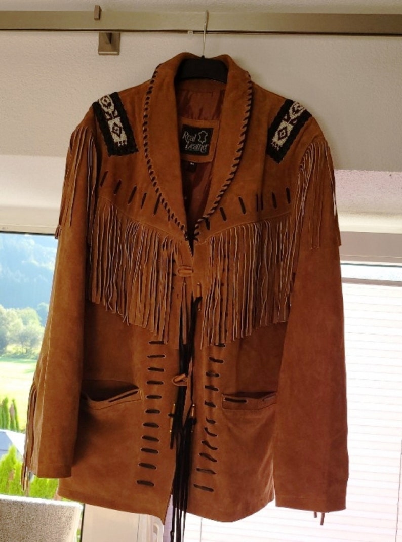 - Men's Handmade Native American Cow boy Suede Leather Jacket Coat War shirt J005
