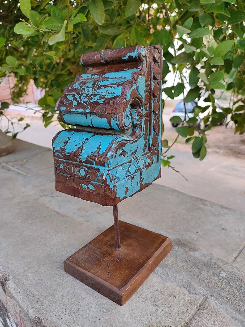 - Antique Wooden Architectural Wall Bracket On Stand Indian Home Decor Floral Bracket On Stand Blue Distress Wall Bracket Corner Wood Home Dec