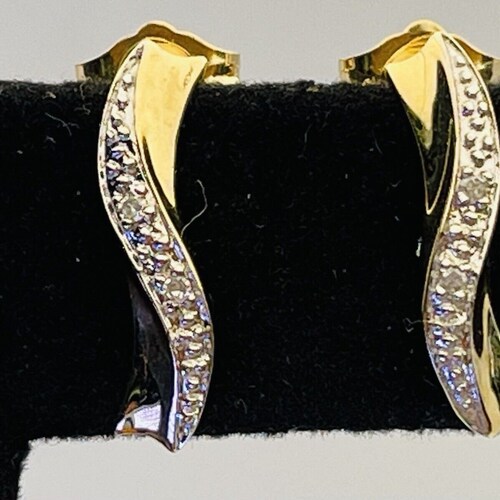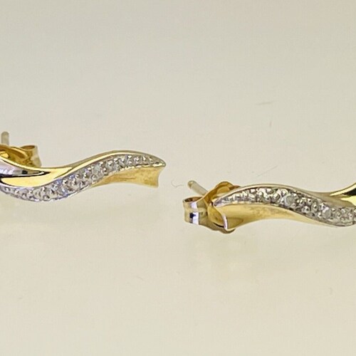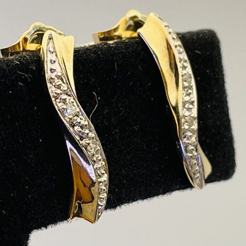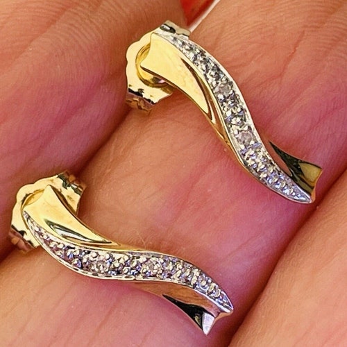 9 Carat Yellow Gold & Pave Set Diamond Twist Design shops Earrings Butterfly Backs, 9 Carat Yellow Gold & Pave Set Diamond Twist Design Earrings Butterfly Backs high quality