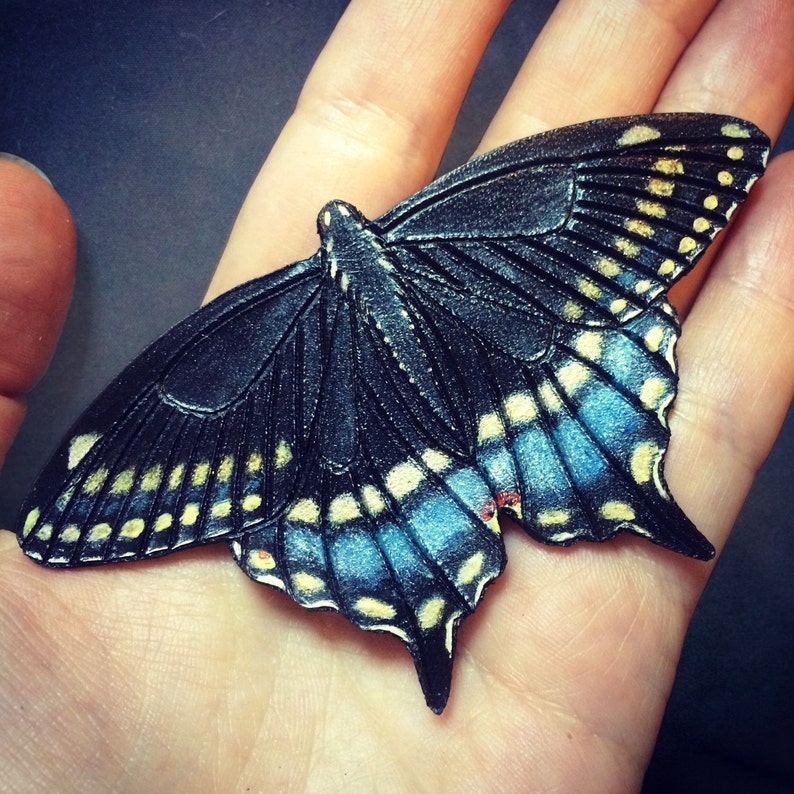 - Swallowtail butterfly hair barrette or brooch - Hand tooled leather hair barrette - original gift
