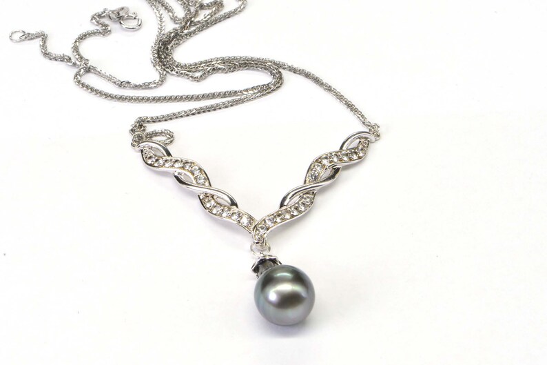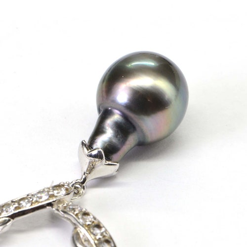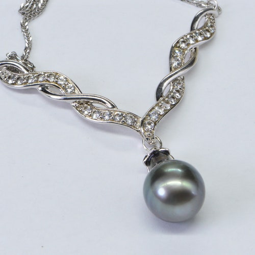 Black Akoya Pearl Necklace shops Pendant Herkimer Diamond Birthstone July Gift for Her, Black Akoya Pearl Necklace Pendant Herkimer Diamond Birthstone July Gift for Her best