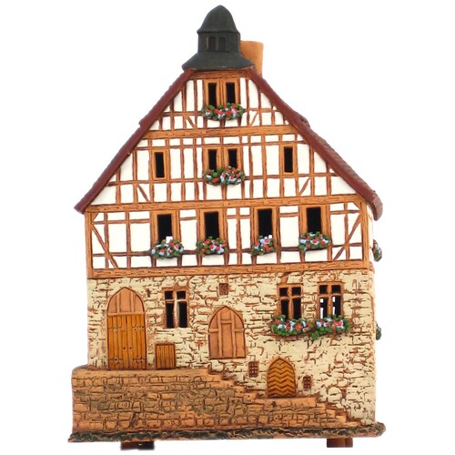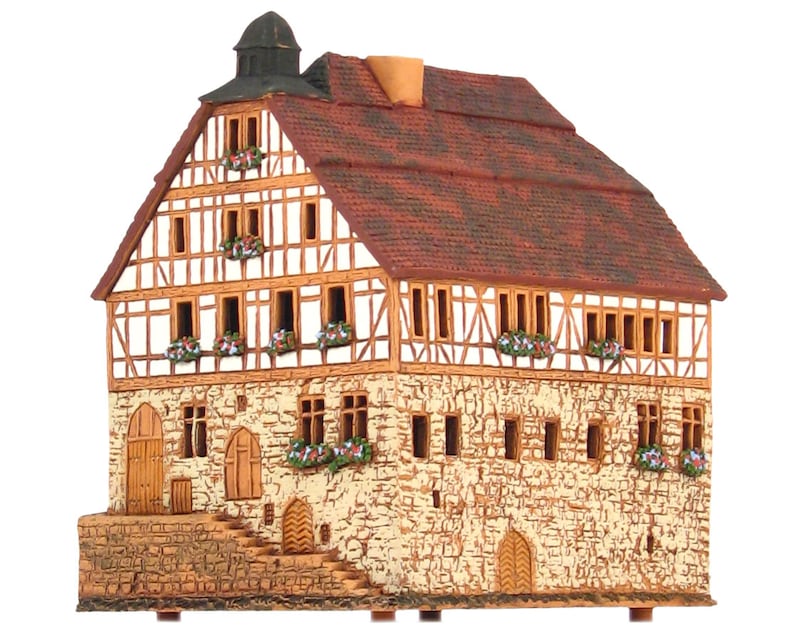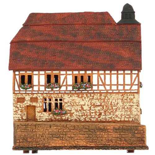- Midene Ceramic house Tea light Candle Holder Handmade Collectible miniature house replica of Town Hall in Homberg Germany D362 mini house