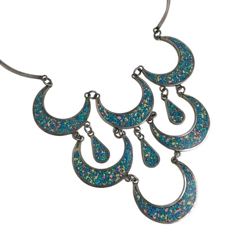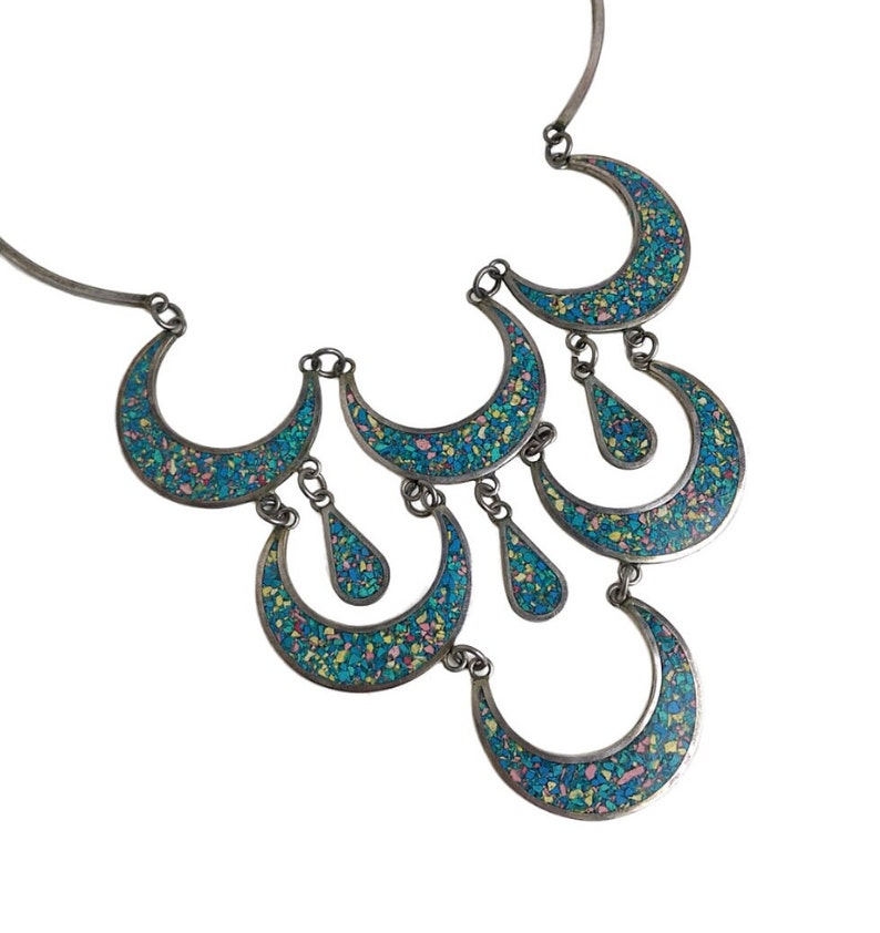Mexican Sterling shops Silver Crushed Turquoise Inlay 16” Taxco Necklace, Mexican Sterling Silver Crushed Turquoise Inlay 16” Taxco Necklace factory