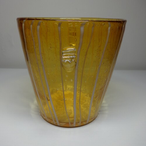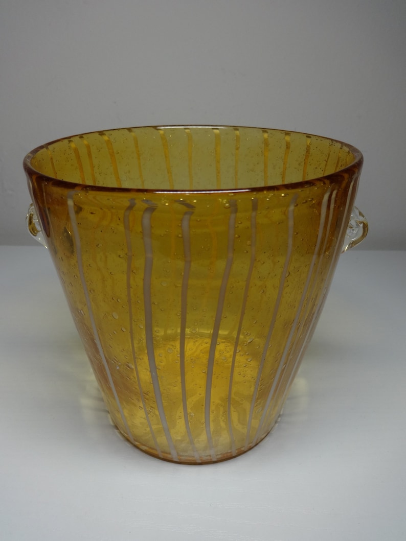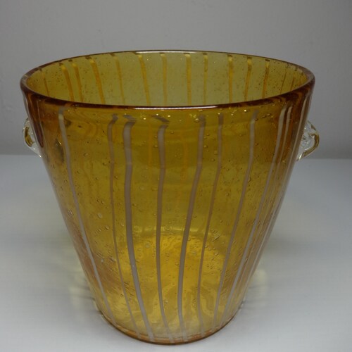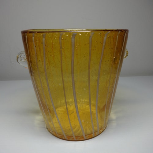 - Vintage Yellow & White Murano Glass Venetian Arts Venini Disaronno Ice Bucket