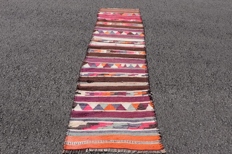 - Turkish Kilim, Vintage Kilim, 8.6'x2.4',Runner Kilim, Organic Kilim, Hallway Kilim, Antique Kilim, Kilim Rug, Kitchen Kilim, Striped 2803