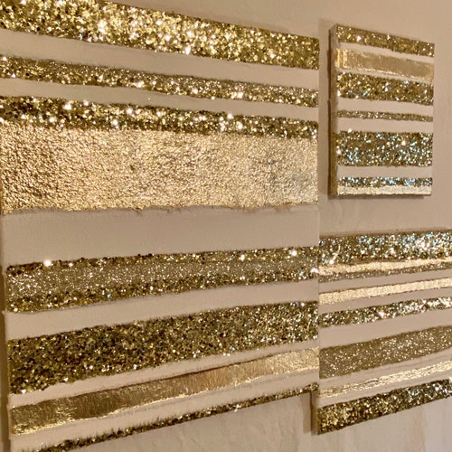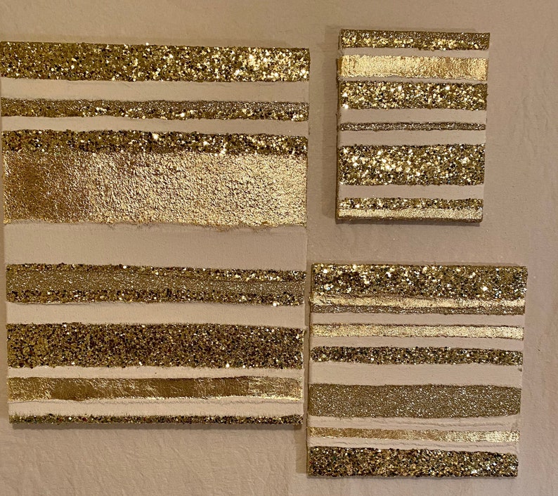 - 3 piece gold abstract wall art gold glitter gold leaf foil chic gold glitter wall art gold glam wall art gold foil wall art gold wall art