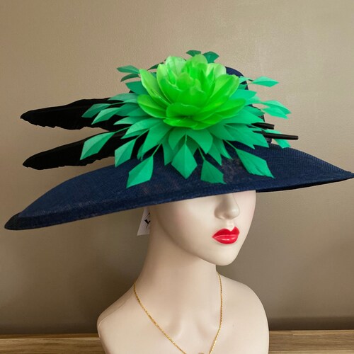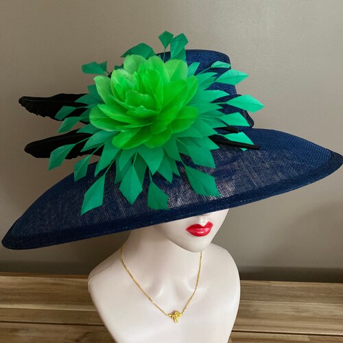 Navy/Green Kentucky Derby shops Hat. Navy Church Hat. Green Mother's Day Hat. Green Royal Ascot Hat. Navy Bridal/Tea Party Hat. Green Race Hat, Navy/Green Kentucky Derby Hat. Navy Church Hat. Green Mother's Day Hat. Green Royal Ascot Hat. Navy Bridal/Tea Party Hat. Green Race Hat on sale