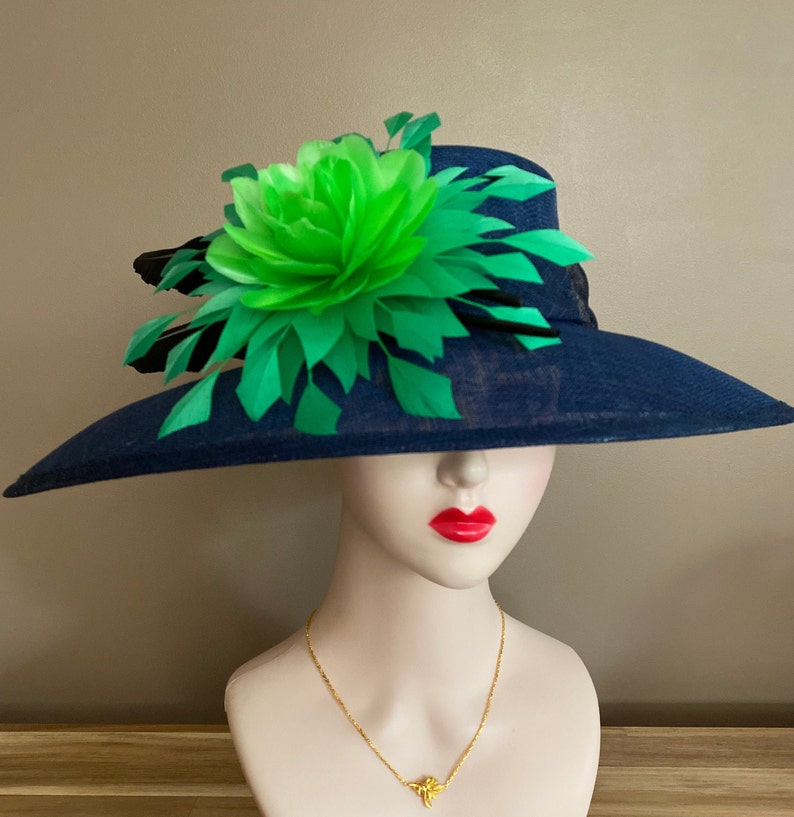 Navy/Green Kentucky Derby shops Hat. Navy Church Hat. Green Mother's Day Hat. Green Royal Ascot Hat. Navy Bridal/Tea Party Hat. Green Race Hat