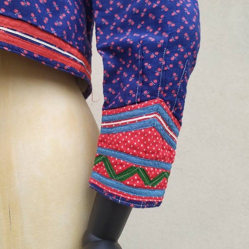 - Vintage 1950 blue cotton Hungarian embroidered jacket from Györgyfalva