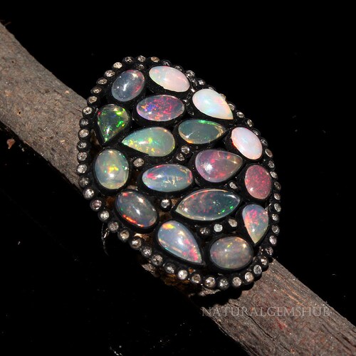 Shops White Diamond Ring, 925 Silver Opal Diamond Ring, Wedding Diamond Jewelry, Handmade Ring ,Birthstone Opal Ring Gift For her Jewelry