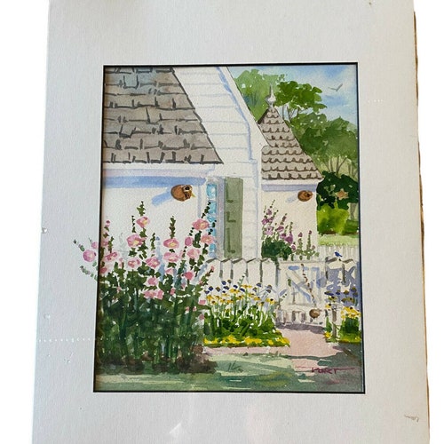 Boden Portwood "Old Hollyhocks” Williamsburg VA 14" shops x 11" Watercolor, Boden Portwood "Old Hollyhocks” Williamsburg VA 14" x 11" Watercolor fashion