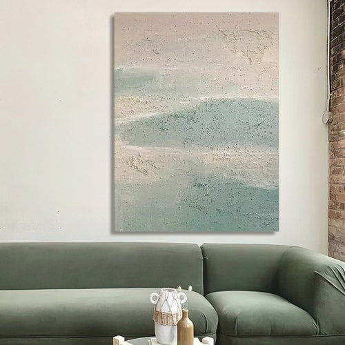 Large shops Abstract painting on canvas,Lounge wall art, Minimalist cloud and mist oil painting, Textured Wall decor, Nordic style, green beach, Large Abstract painting on canvas,Lounge wall art, Minimalist cloud and mist oil painting, Textured Wall decor, Nordic style, green beach offers