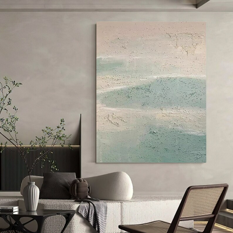 - Large Abstract painting on canvas,Lounge wall art, Minimalist cloud and mist oil painting, Textured Wall decor, Nordic style, green beach