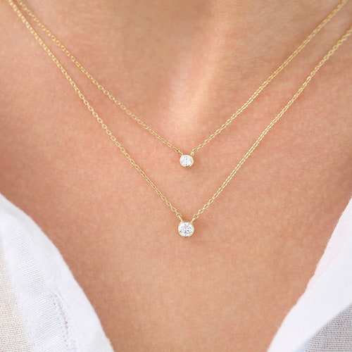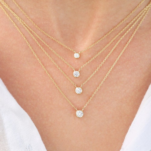RESERVED for Austin / EXCHANGE shops with 0.012 Ctw Dainty Diamond Bezel Set Necklace