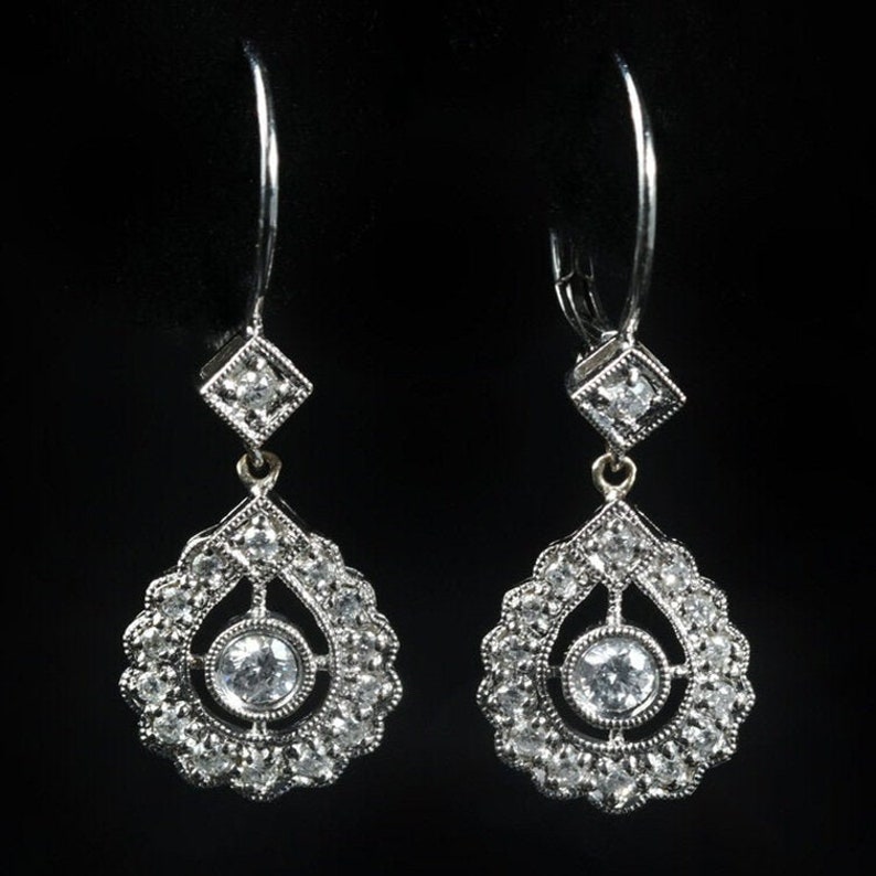 Vintage Art Deco Earrings, Floral Halo shops Earrings, Lever Back Earrings, Blue Sapphire Earrings, Antique Earrings, 14K Gold over Earrings, Vintage Art Deco Earrings, Floral Halo Earrings, Lever Back Earrings, Blue Sapphire Earrings, Antique Earrings, 14K Gold over Earrings collections