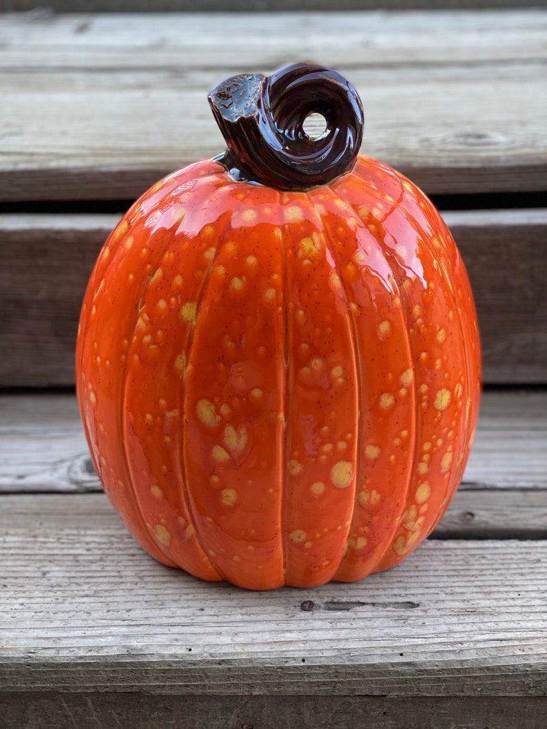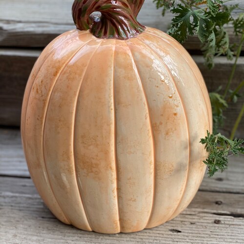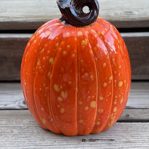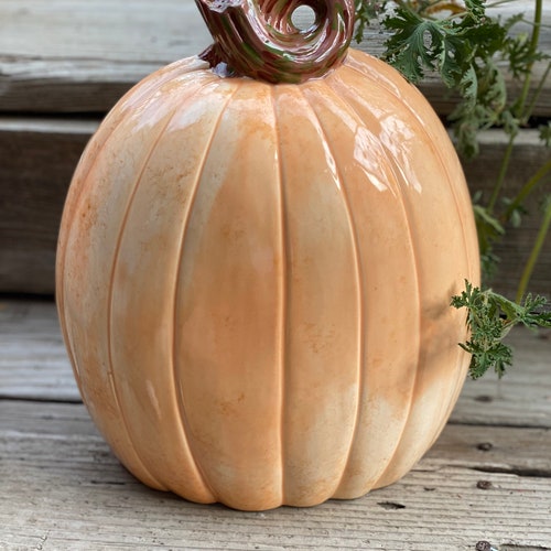 - Large Hand Painted Orange Ceramic Pumpkin