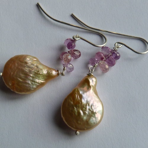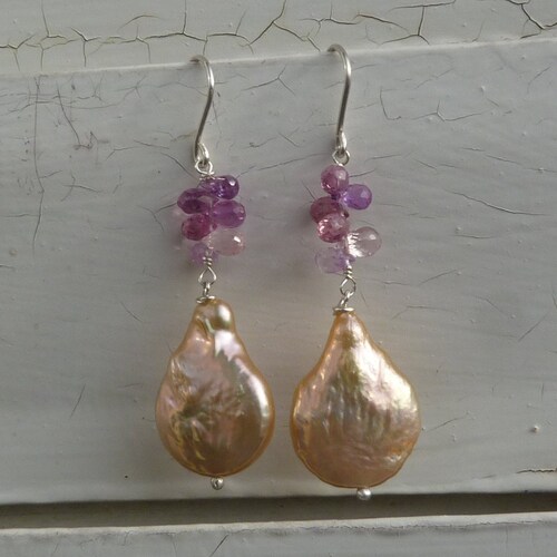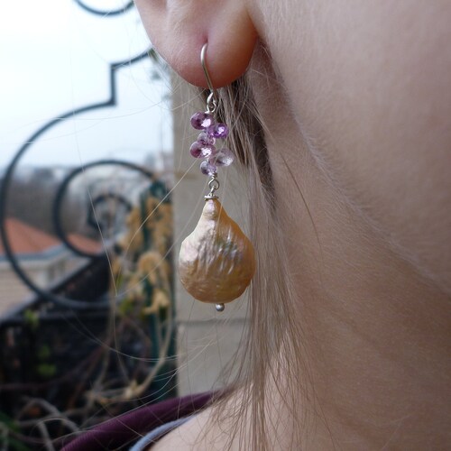 Silver earrings with sapphires and baroque pearls: IMPORTANT, shops French vat is included, 20% off for US, australian and canadian buyers, Silver earrings with sapphires and baroque pearls: IMPORTANT, French vat is included, 20% off for US, australian and canadian buyers order