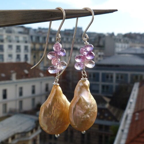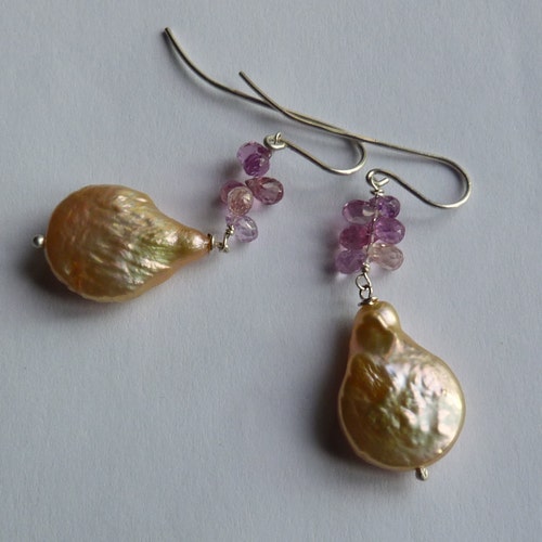- Silver earrings with sapphires and baroque pearls: IMPORTANT, French vat is included, 20% off for US, australian and canadian buyers