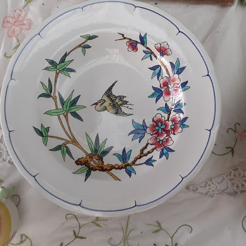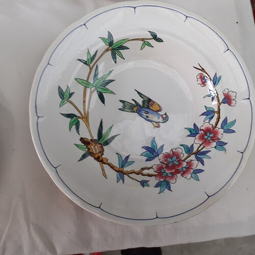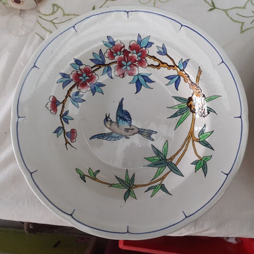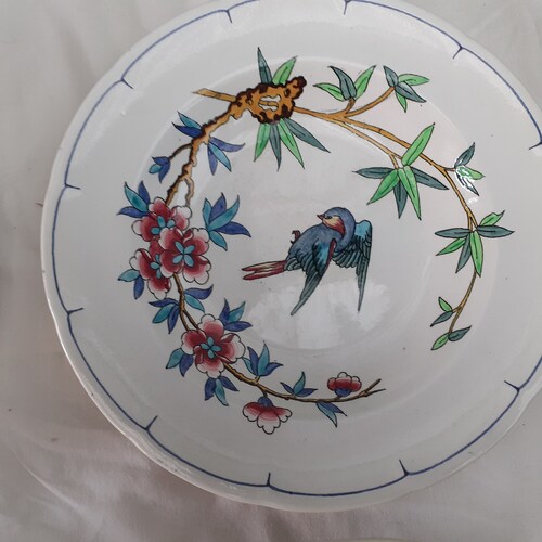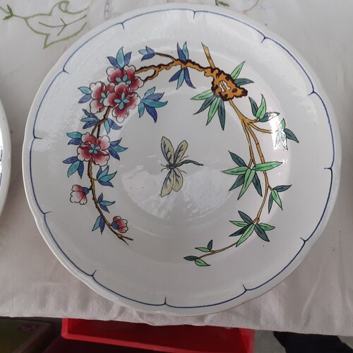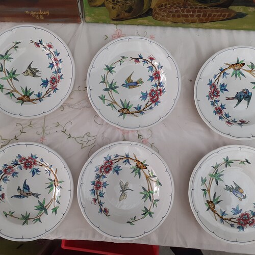 - set of 6 hollow plates decoration birds and insects longwy XIXeme