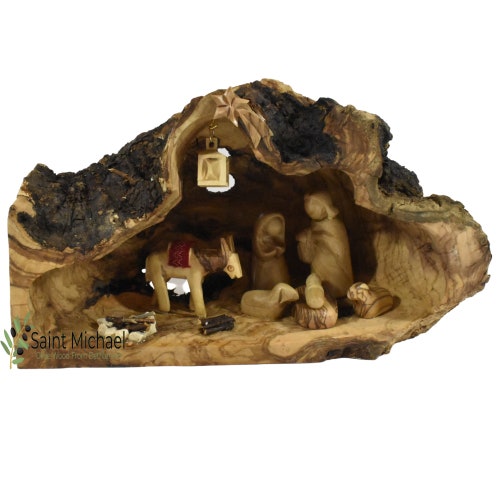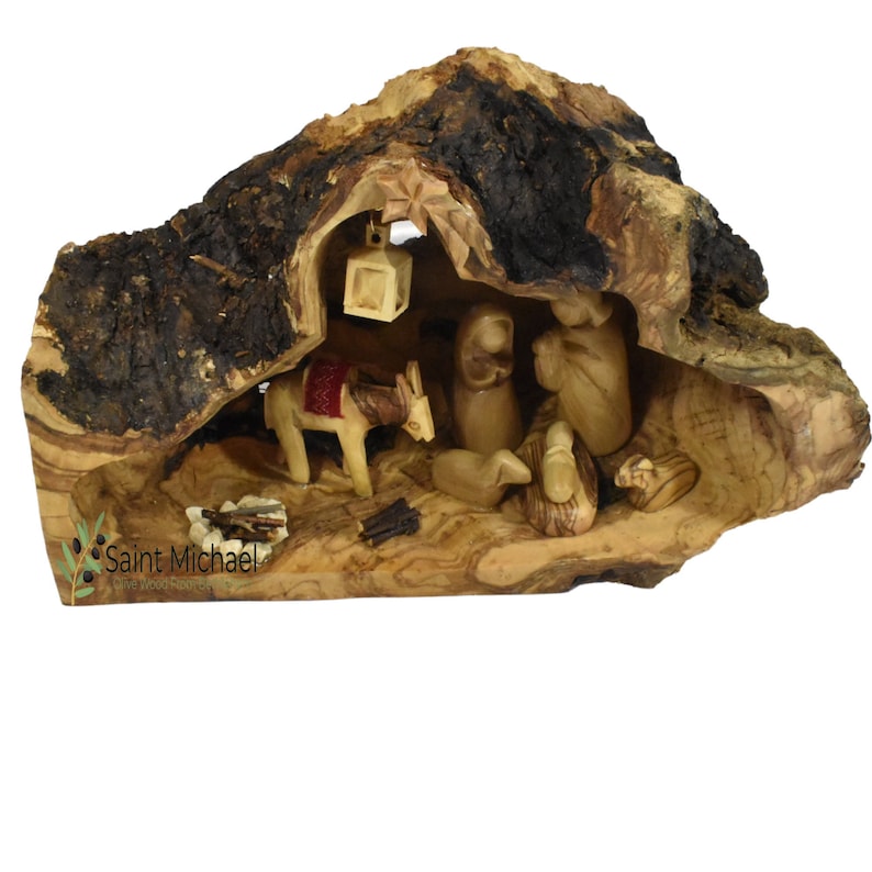 Bethlehem Scene in shops Manger carved inside of a Solid Piece of Olive wood Branch - Christmas Tree Nativity Décor - Made in the Holy Land, Bethlehem Scene in Manger carved inside of a Solid Piece of Olive wood Branch - Christmas Tree Nativity Décor - Made in the Holy Land authentic