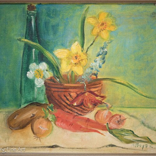 Vintage Oil Painting shops Floral Still Life with Vegetables Signed A. Boyer, Framed, Vintage Oil Painting Floral Still Life with Vegetables Signed A. Boyer, Framed order
