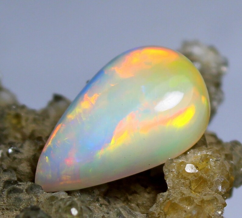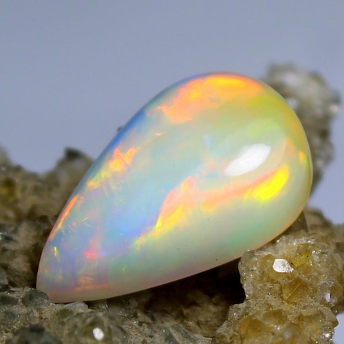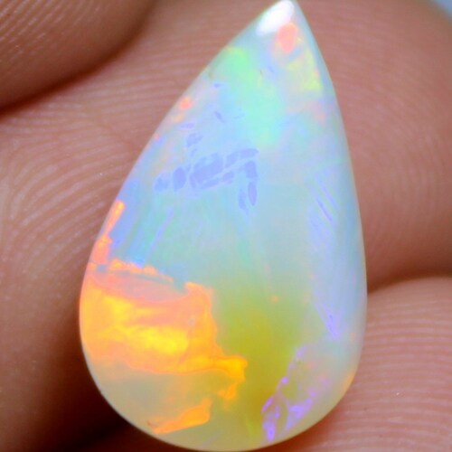 - Top Natural White Multi Fire Ethiopian Opal 2.65 Carat Loose Gemstone Making Jewelry Cabochon Opal Stone