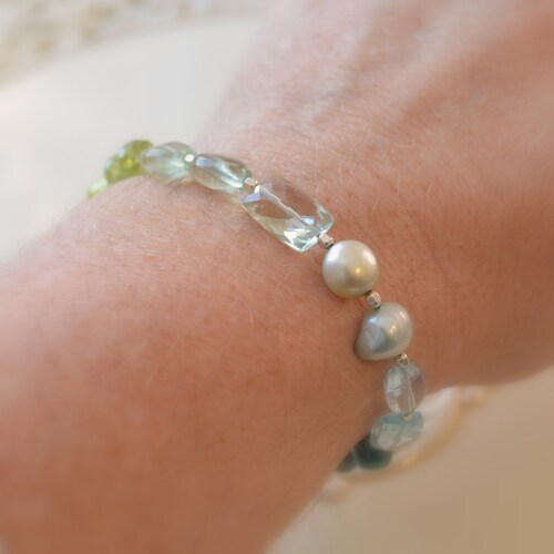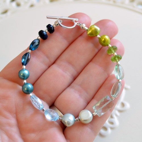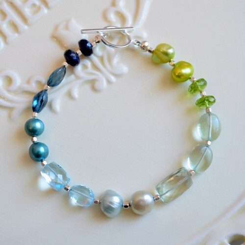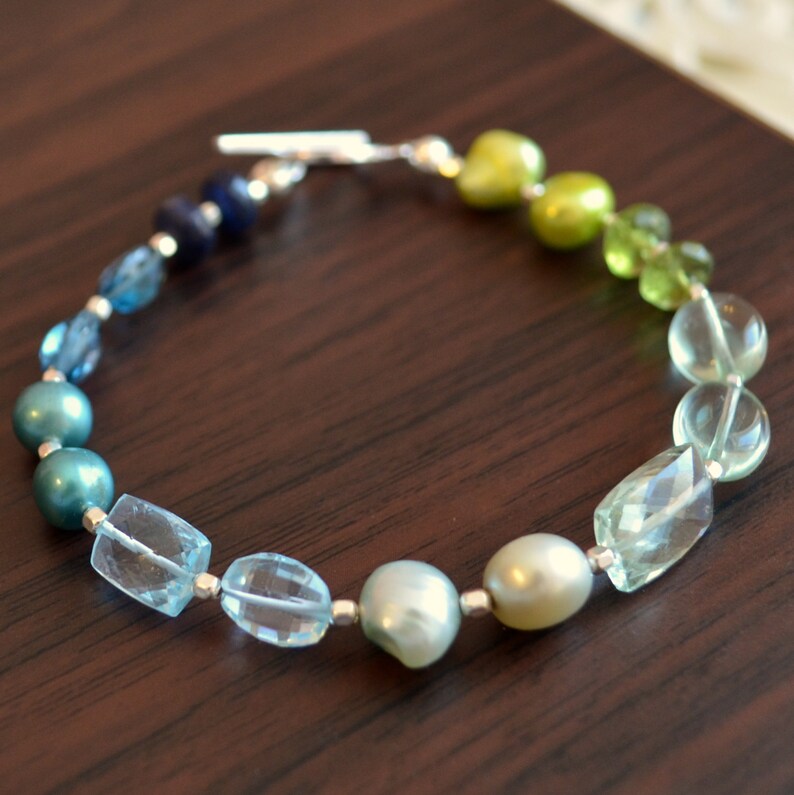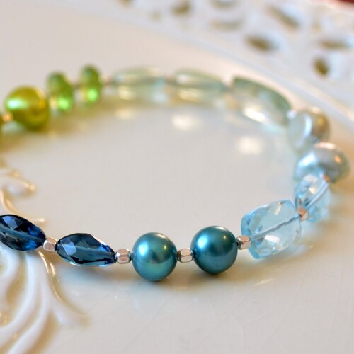 Blue and Green Beaded Bracelet, Real Freshwater Pearl, Blue Topaz Gemstone, Green Amethyst, shops Peridot, Sterling Silver - Free Shipping, Blue and Green Beaded Bracelet, Real Freshwater Pearl, Blue Topaz Gemstone, Green Amethyst, Peridot, Sterling Silver - Free Shipping top