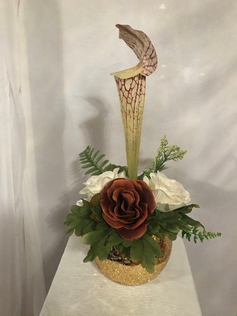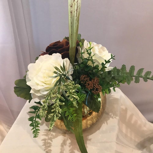 Sheer Rose of shops Gold Mixed Floral Arrangement In Gold Vase By J.Renee