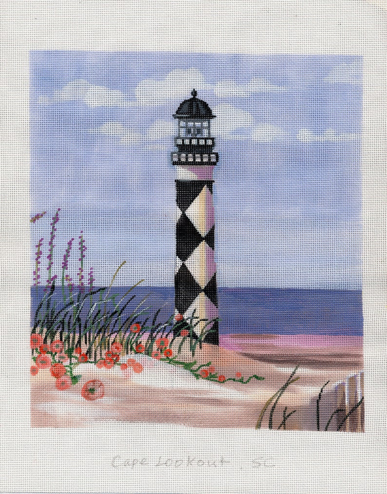 EXCLUSIVE Colorful Painted Canvas for Needlepoint - Cape shops Lookout Lighthouse in SC on #18