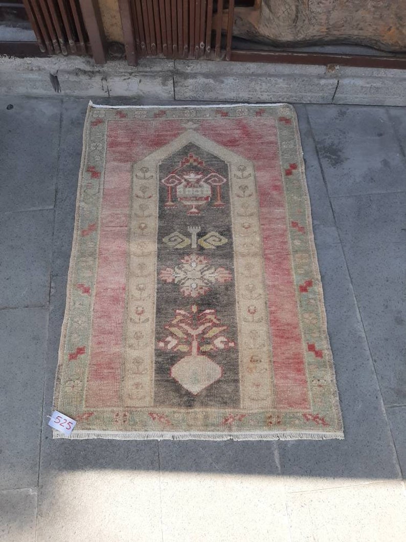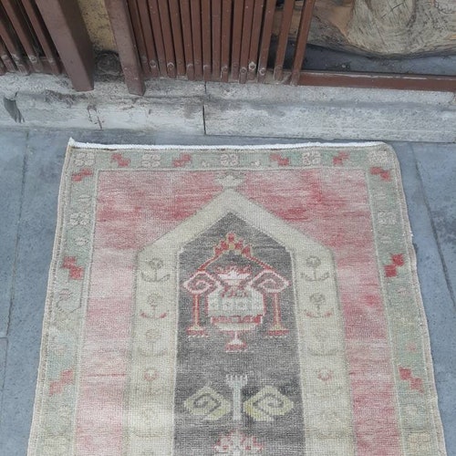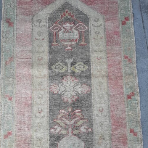 - Vintage Anatolian Turkish Rug 1x3, Handmade Foyer Carpet