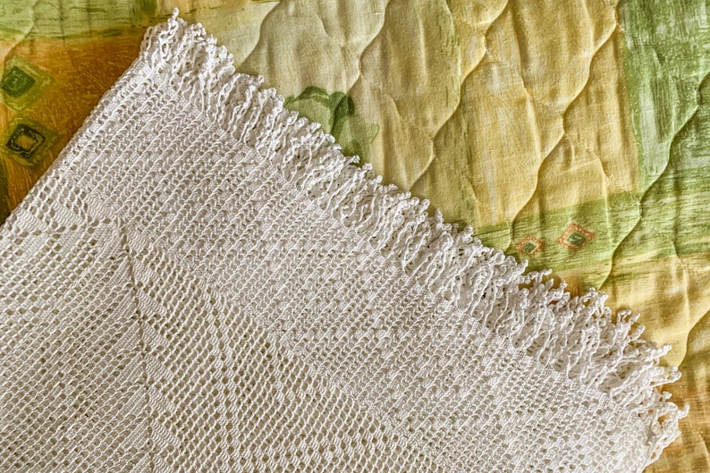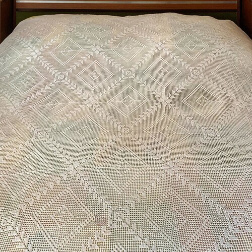 Hand crocheted shops vintage white bedcover / throw, Hand crocheted vintage white bedcover / throw authentic