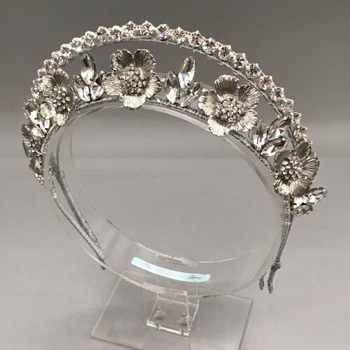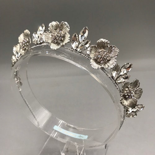 Flower and Leaves bridal headband halo silver shops crown - Tiara - silver crystal headpiece, Wedding headband, bridal accessory, Silver leaves, Flower and Leaves bridal headband halo silver crown - Tiara - silver crystal headpiece, Wedding headband, bridal accessory, Silver leaves authentic