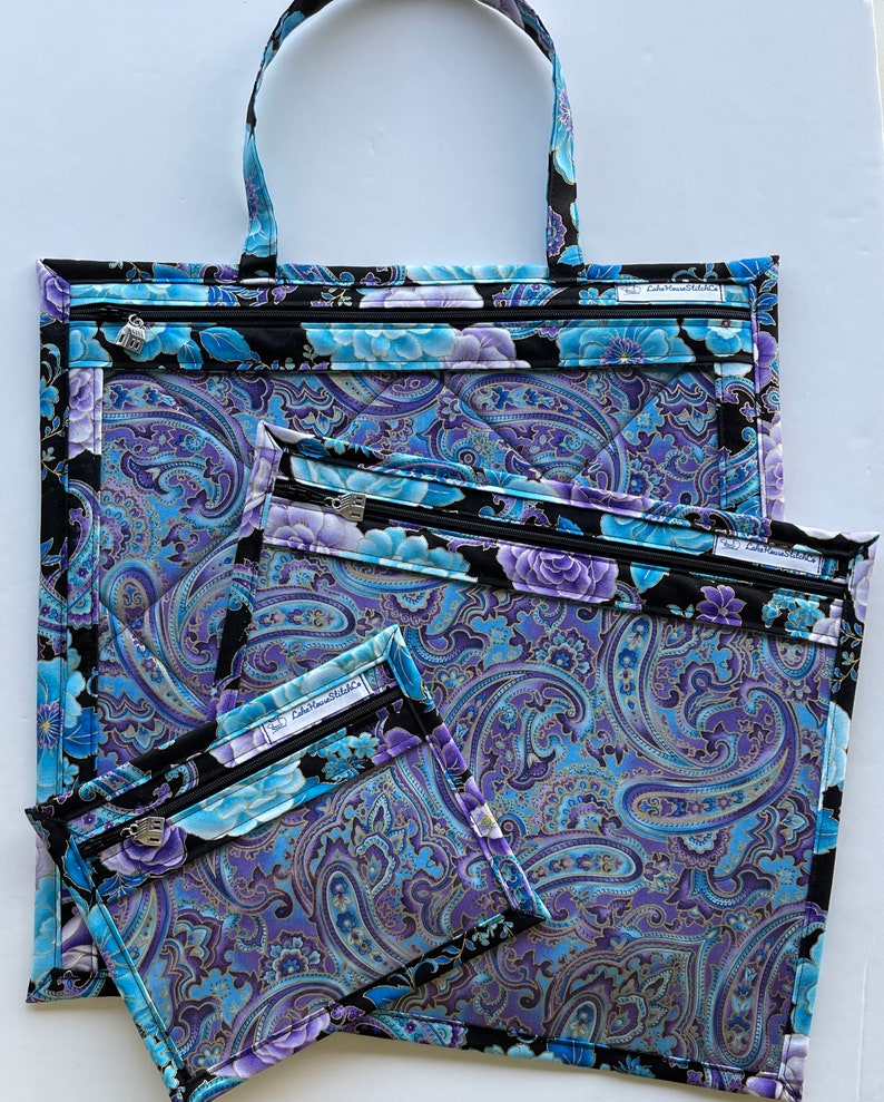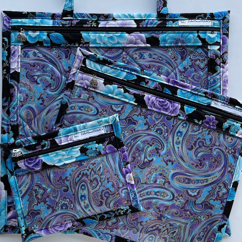 - Deluxe Set Blue Blooms and Purple Paisley Project Bag Set for QSnap/WIP/Cross Stitch/Embroidery/Needlepoint/Sewing/Quilting/Felting