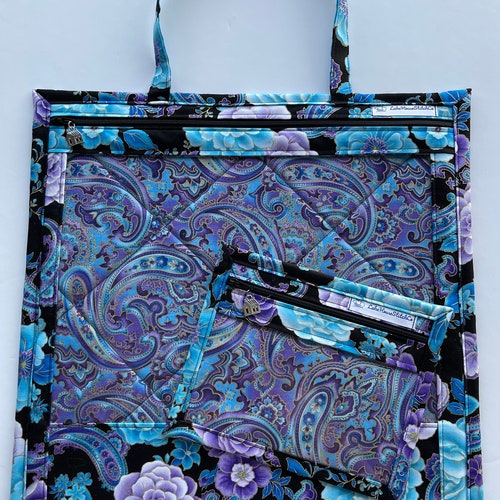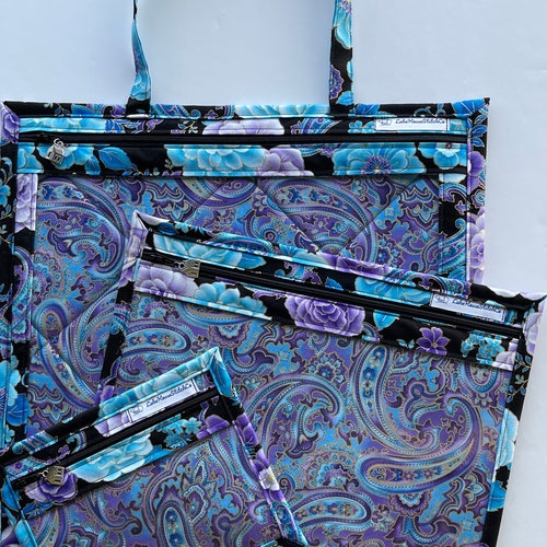 Deluxe Set Blue Blooms and Purple Paisley Project Bag Set for shops QSnap/WIP/Cross Stitch/Embroidery/Needlepoint/Sewing/Quilting/Felting