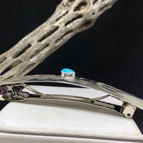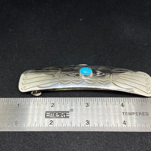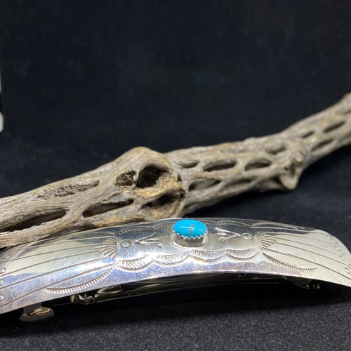 Handmade Native shops American Navajo King man Turquoise Sterling Silver Hair Barrette signed & stamped, Handmade Native American Navajo King man Turquoise Sterling Silver Hair Barrette signed & stamped authentic