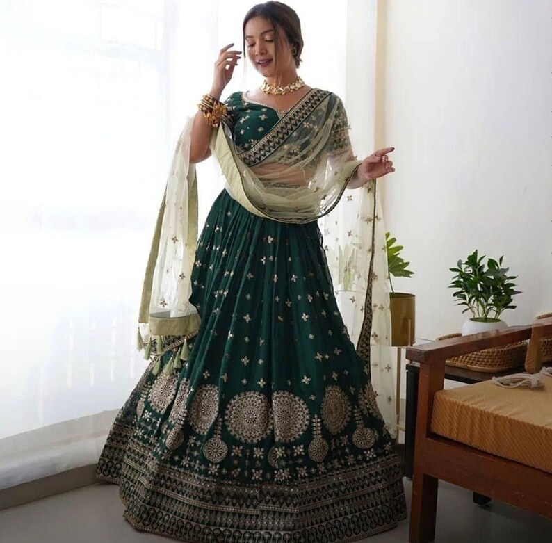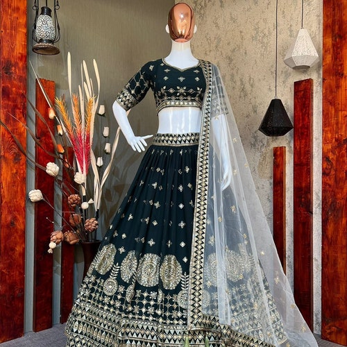 Bottle Green Color shops Georgette Lehenga Choli Party Wear Lehenga Functional Wear Lehenga Choli Lehenga For Women, Bottle Green Color Georgette Lehenga Choli Party Wear Lehenga Functional Wear Lehenga Choli Lehenga For Women fashion